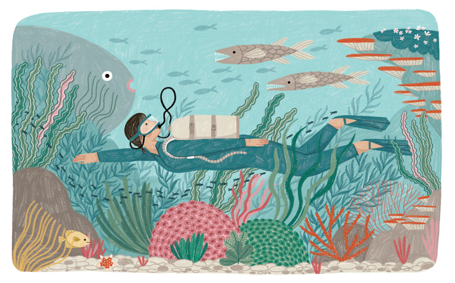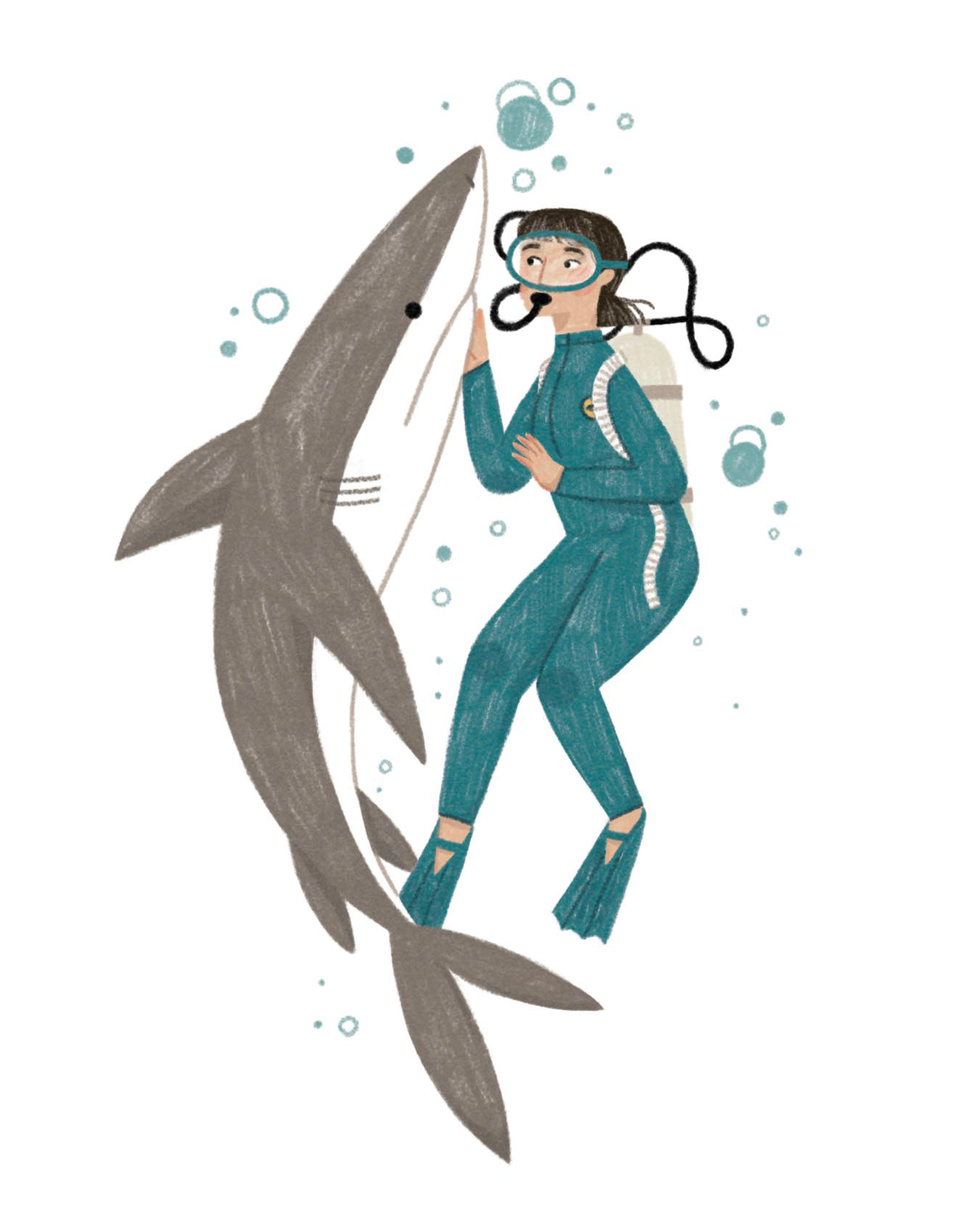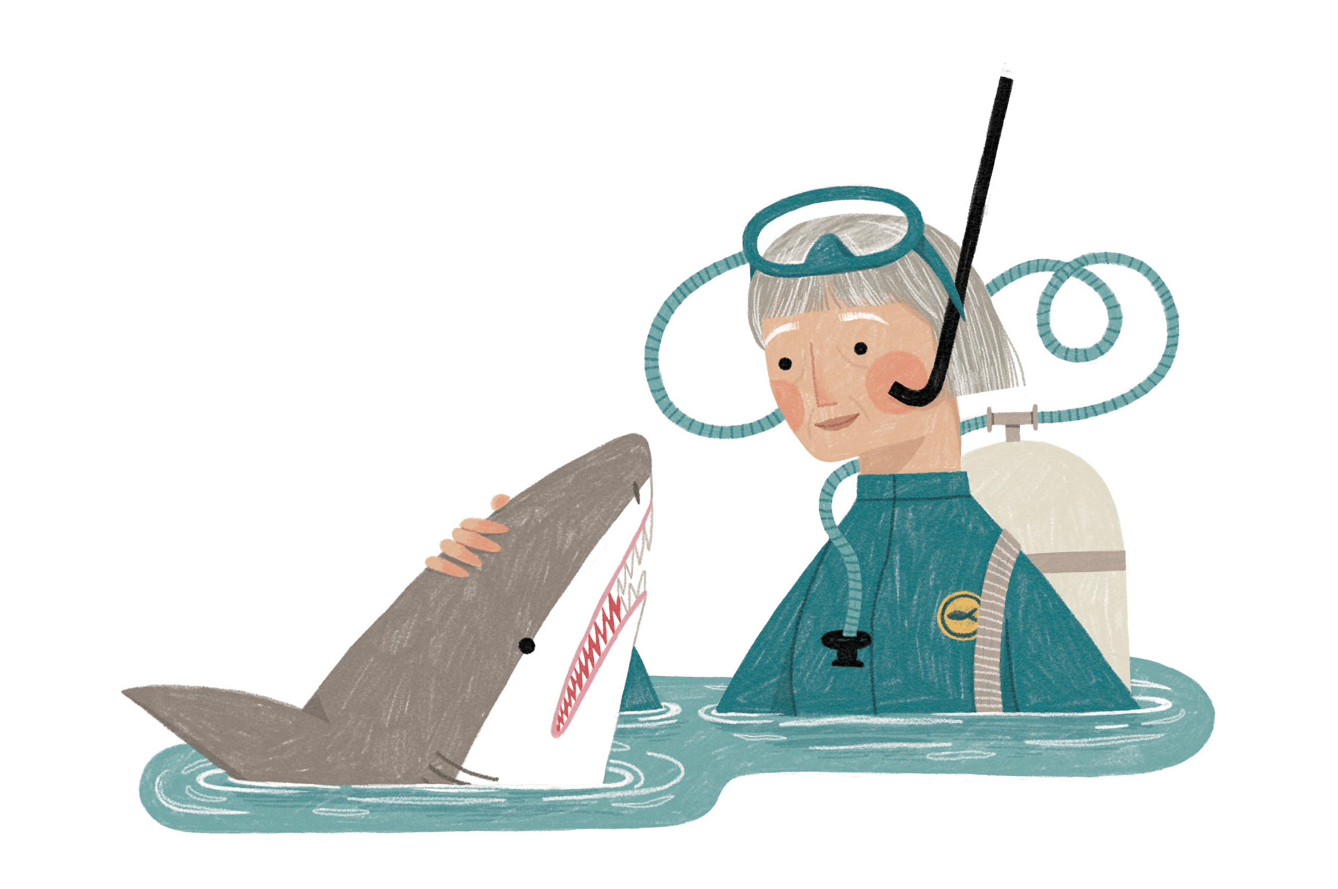 Illustrations for issue number 13 of Bravery Magazine starring the female role model, the ichthyologist Eugenie Clark, and describing her inspiring life story. 2020